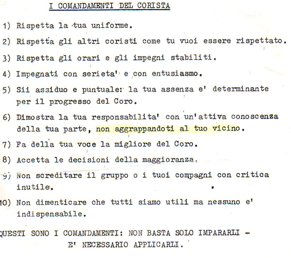 Check out the original 1970's document with The Choir's Commandments